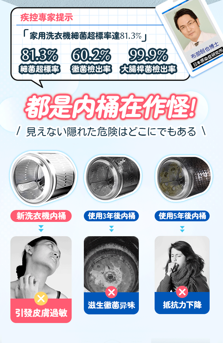20分鐘前還洗衣機一個清新 ,一鍵免浸泡 洗衣機抑菌清潔液 淡淡清香_你值得擁有 - 【超值特惠】5入組 NT$1190
